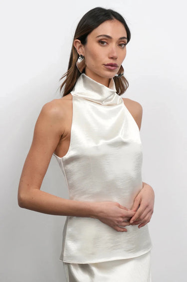 Illuminate your wardrobe with the Premium Satin Pearl Halter Neck Top, a piece that captures the soft-focus glow of moonlight. This "skirt-neck" masterpiece features a high, draped collar that offers a refined, boardroom-ready aesthetic under a blazer, only to unveil an elegant backless silhouette for club nights and intimate date nights. The ethereal pearl-cream finish is meticulously tuned to enhance the radiance of Indian skin tones, providing a sophisticated "Quiet Luxury" edge. Crafted from heavy-weight, non-cling satin, it ensures a fluid, breathable fit through college festivals and festive wedding celebrations. Elevate your AM-to-PM rotation with this luminous staple, delivered with Free Shipping across India.